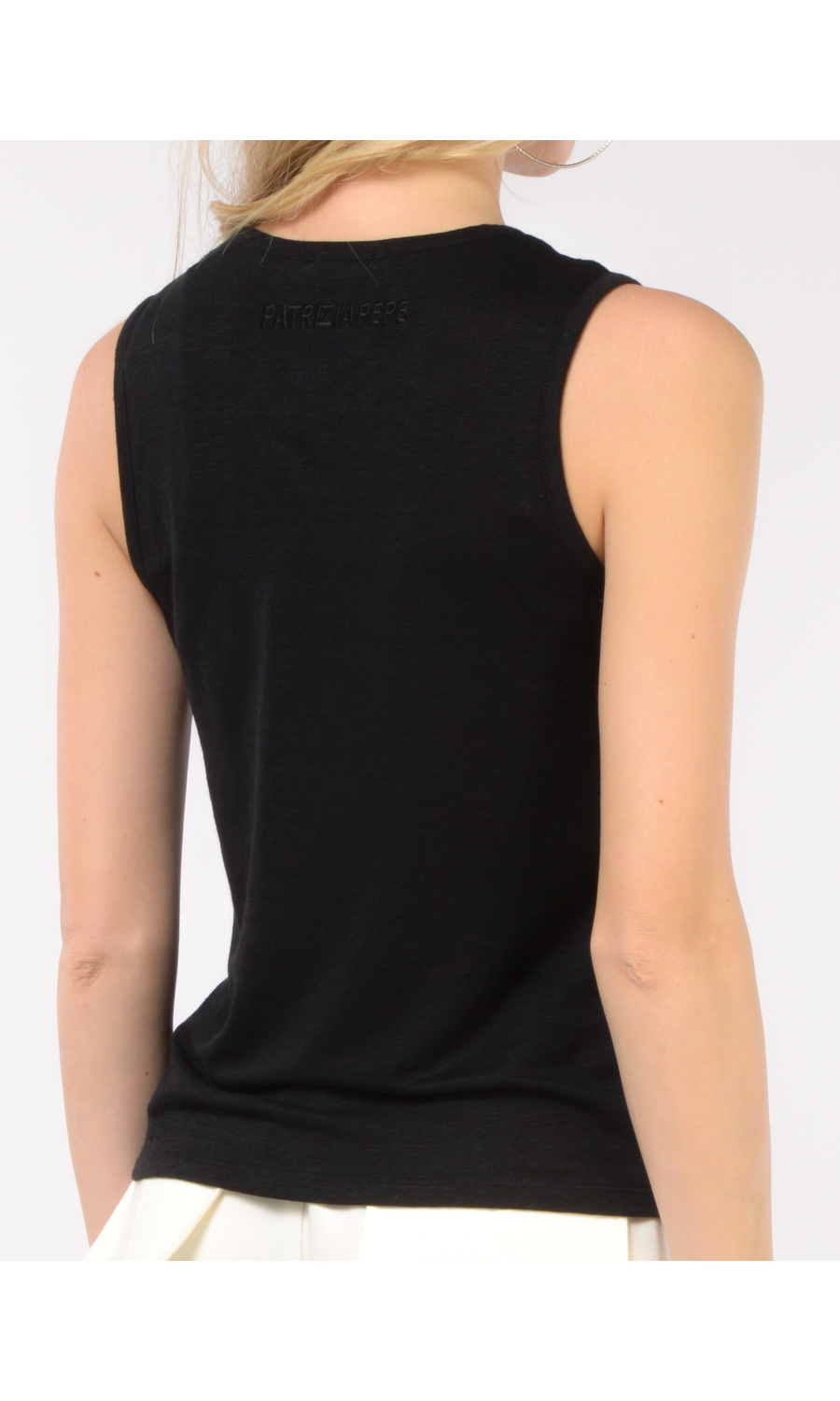 canotta da donna Patrizia Pepe in lino con logo canotta da donna Patrizia Pepe in lino con logo 2M4458J291_B823