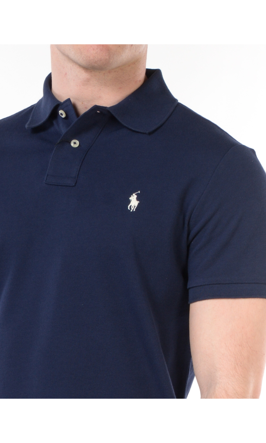 Polo modello Custom Slim Fit con logo ricamato frontale a contrasto colore, chiusura frontale con bottoni a vista a contrasto colore, manica corta con rovescino sul fondo, motivo di piccoli spacchi laterali sul fondo, in piquet di cotone.